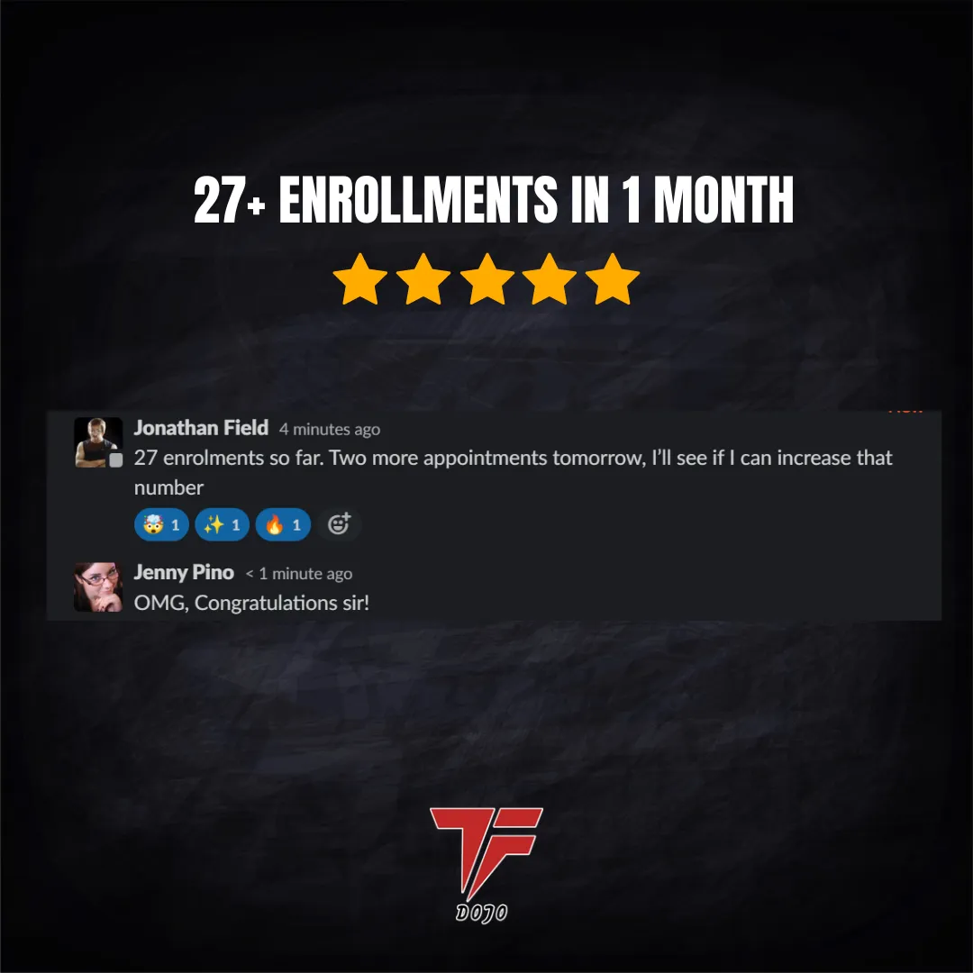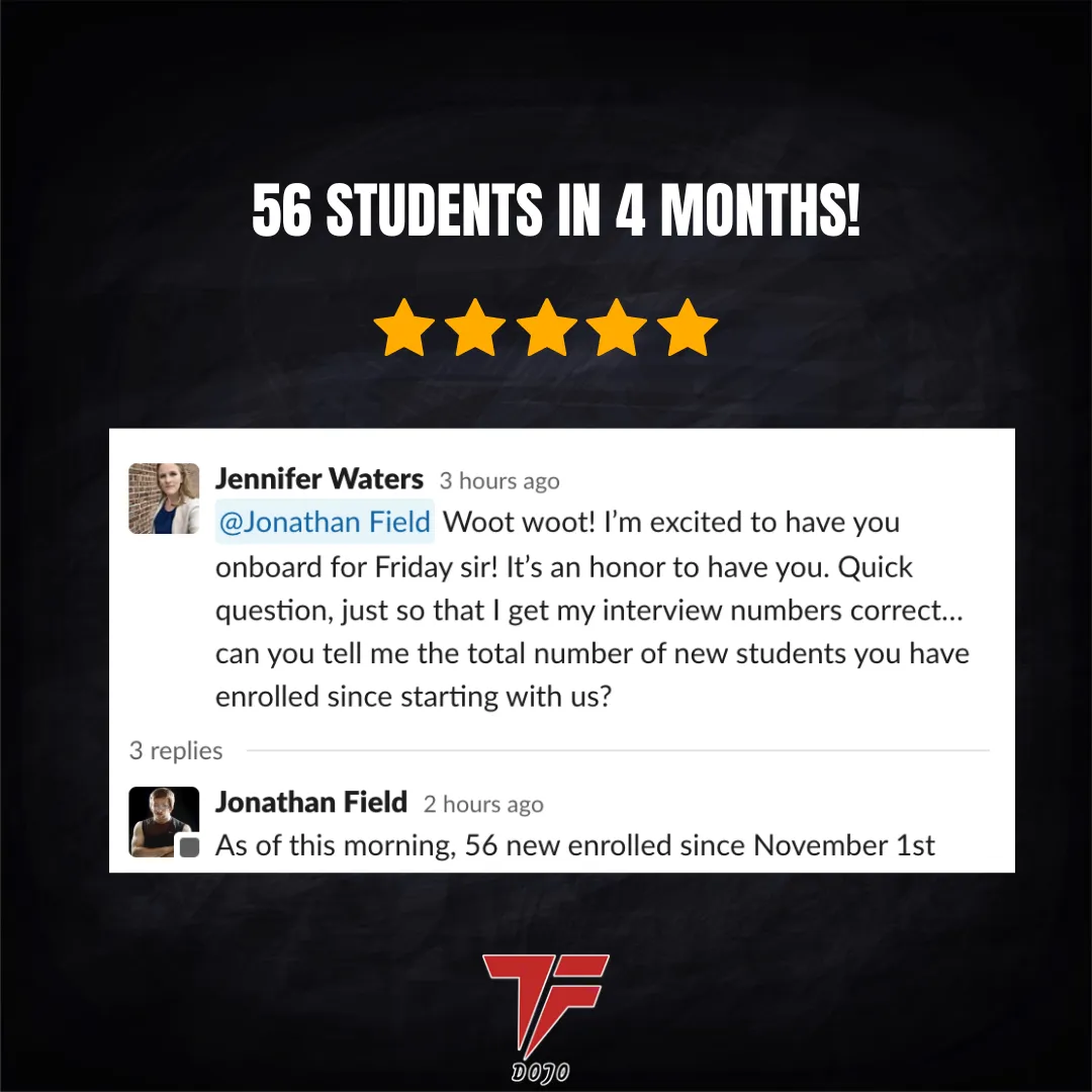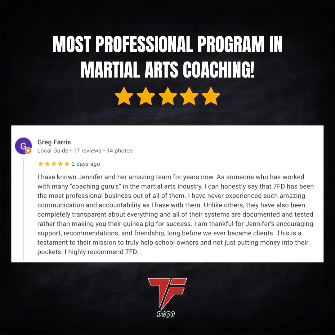 Welcome to 7 Figure Dojo! We are thrilled to have you join our passionate team of experts dedicated to helping martial arts school owners scale their dojos to profitable 6 and 7 figures. We believe in fostering a culture of excellence, personal growth, and inspiring greatness within ourselves and our clients.